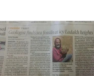 Signifies Ladakh was near the coast 20 million years ago.