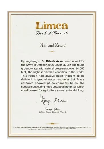 • Dr Ritesh Arya  honoured Bharat Excellence Award  for exemplary work in groundwater exploration