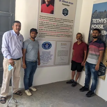 At the Tethys Fossil Museum, we proudly house a collection of around 500 fossils,  meticulously gathered by Dr. Ritesh Arya since 1987. A significant portion of these specimens was integral to his PhD research, adding immense scientific value to the collection.